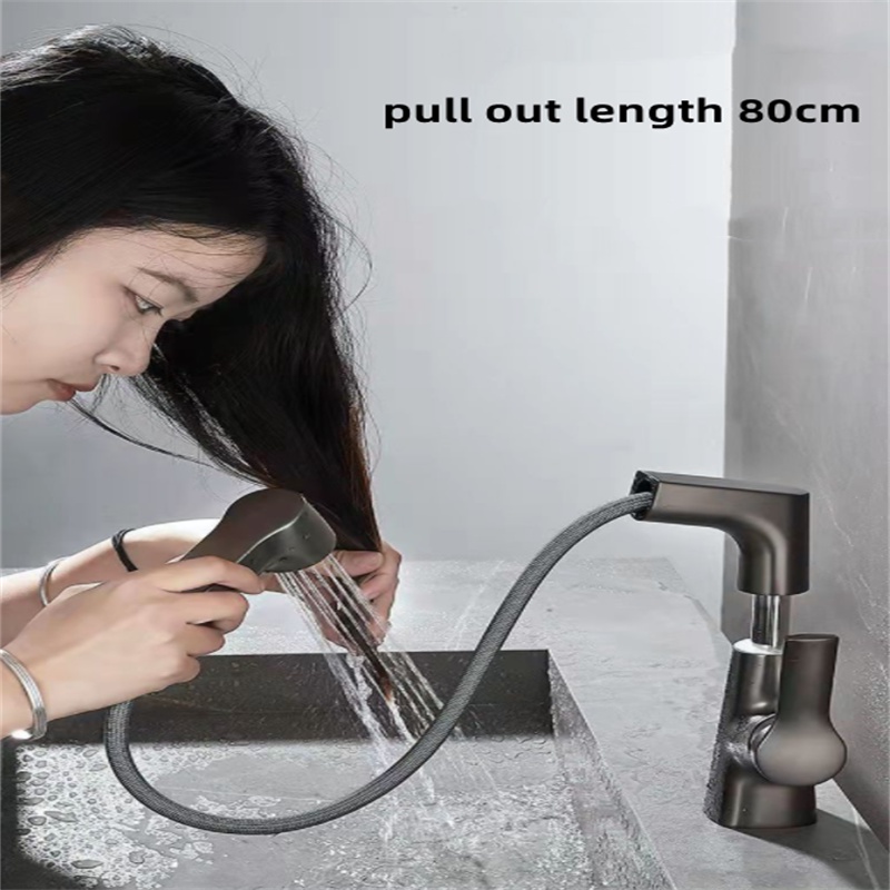 Vòi Nước Xoay 360 Độ Bằng Đồng Thau Màu Xám Sang Trọng Cho Bồn Rửa Nhà Bếp