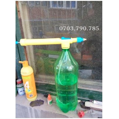 Vòi xịt tưới cây có bơm áp lực tận dụng chai nhựa làm bình tưới