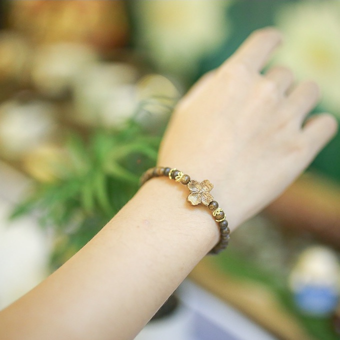 Vòng đơn trầm hương cỏ 4 lá may mắn hạt size 5