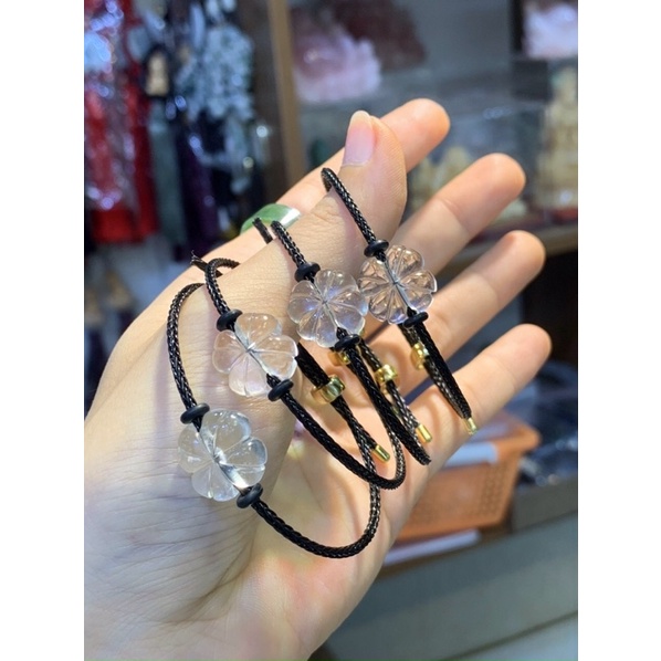 Vòng đeo tay dây cáp cỏ 4 lá đá TA trắng hồng mang lại may mắn