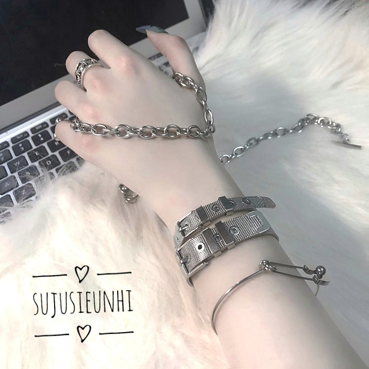 Vòng đeo tay unisex kiểu dáng đồng hồ chất liệu thép không gỉ cá tính