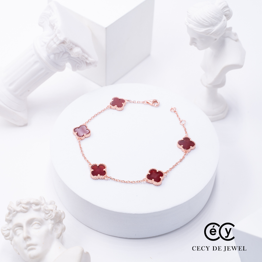 Vòng tay Cỏ bốn lá Mạ vàng 18K, Bạc Ý 925 CECYDEJEWEL tinh tế, sang trọng