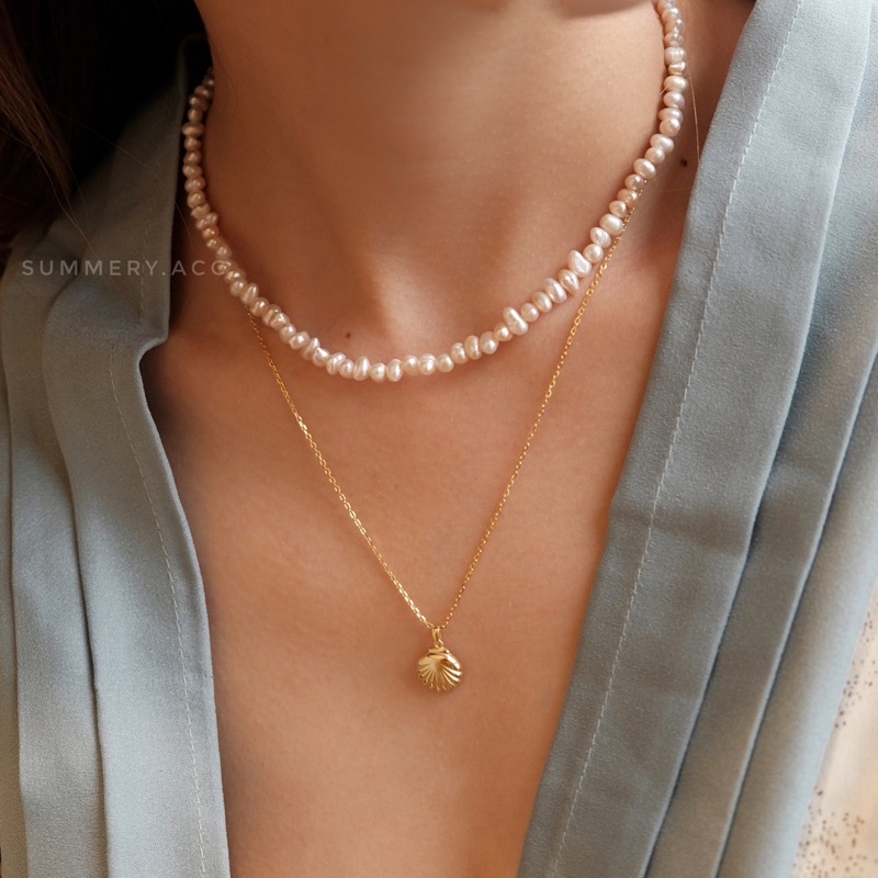 Vòng cổ bạc 925 SUMMERY mặt vỏ sò dây chuyền S925 mạ vàng