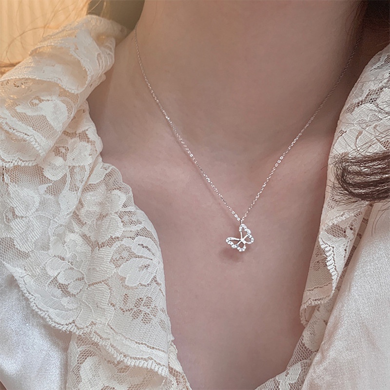 Vòng cổ Bạc Mặt Hình Bướm Phong Cách Hàn Quốc Thời Trang Mùa Hè