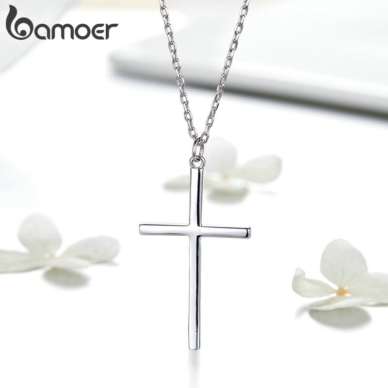 Vòng cổ BAMOER mặt thánh giá màu bạc/vàng hồng YIN076-L