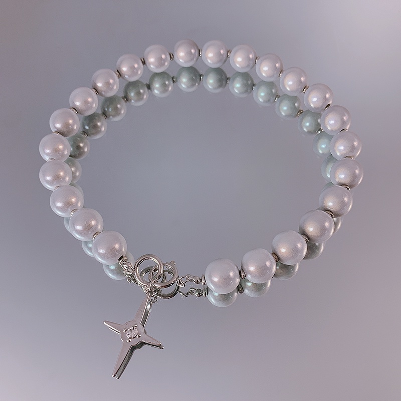 Vòng cổ Chuỗi Hạt Ngọc Trai Hình Chữ Thập Ngôi Sao Màu Sắc Phản Quang Phong Cách punk