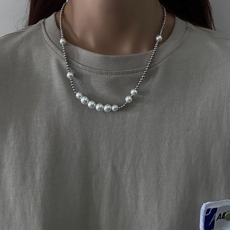 Vòng Cổ Chuỗi Hạt Ngọc Trai Bằng Thép Không Gỉ Thời Trang Cho Nam Nữ