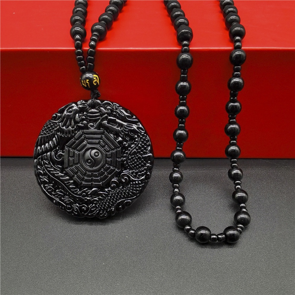 Vòng cổ Mặt Hình Rồng Phượng Hoàng Bằng Đá Obsidian Cho Cặp Đôi
