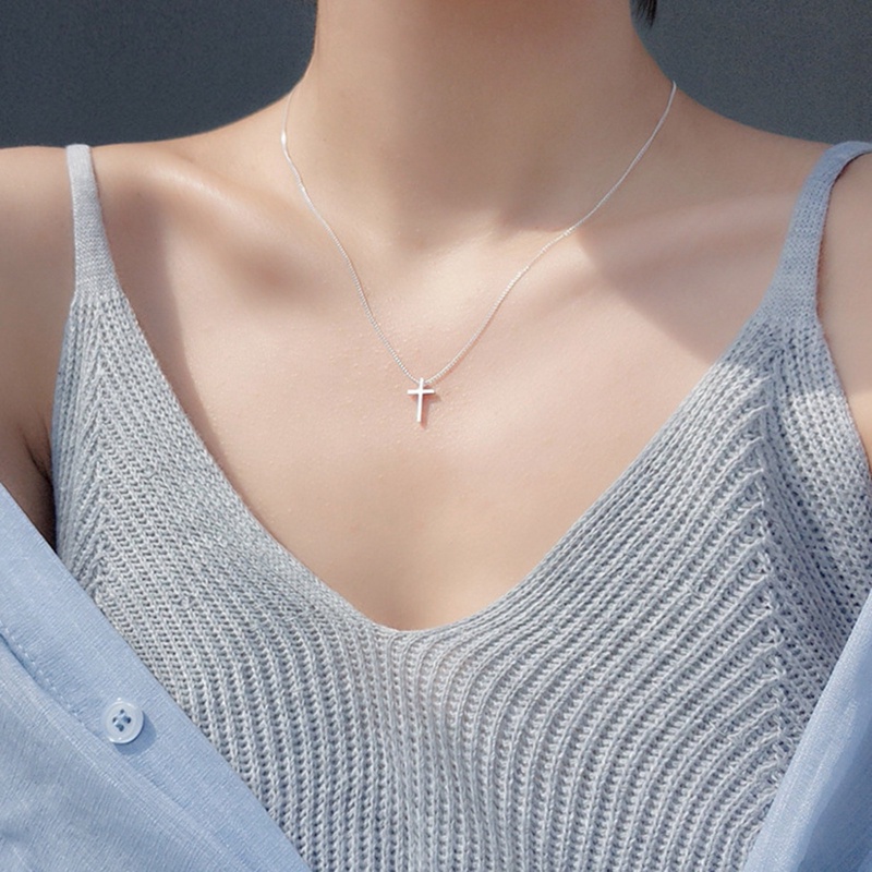 Vòng cổ Mặt Thánh Giá Bằng Thép Không Gỉ Màu Sắc Bạc Dành Cho Nữ