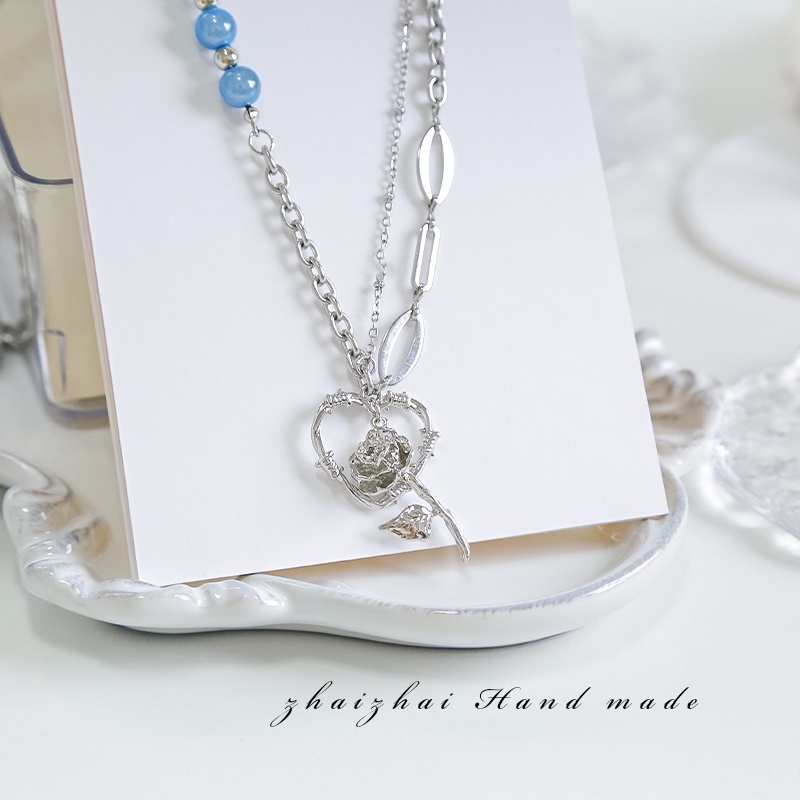 Vòng Cổ Mặt Trái Tim Hoa Hồng Và Bướm Phong Cách Trung Hoa y2k