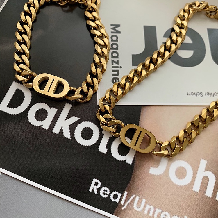 Vòng cổ Sợi Xích Dày Hai Lớp Mặt Chữ D Phong Cách Hip hop Cá Tính Dễ Phối Đồ Cho Nữ