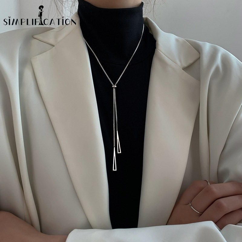 DREJEW Vòng cổ kiểu dây xích mỏng mặt tam giác đơn giản thời trang cao cấp dễ phối đồ dành cho nữ