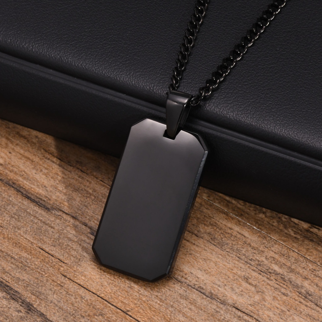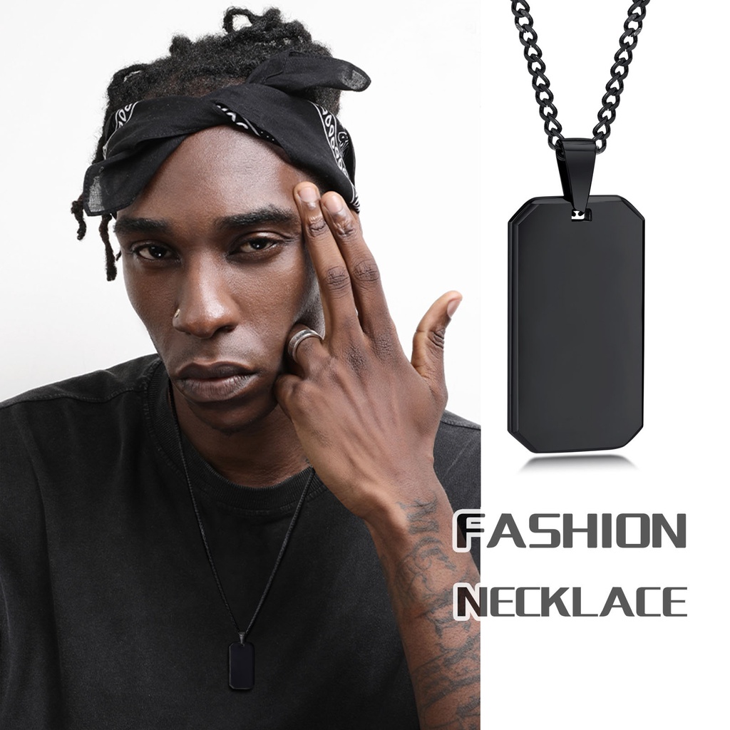 Vòng cổ VNOX mặt hình chữ nhật bằng thép không gỉ màu bạc đen đơn giản cho nam