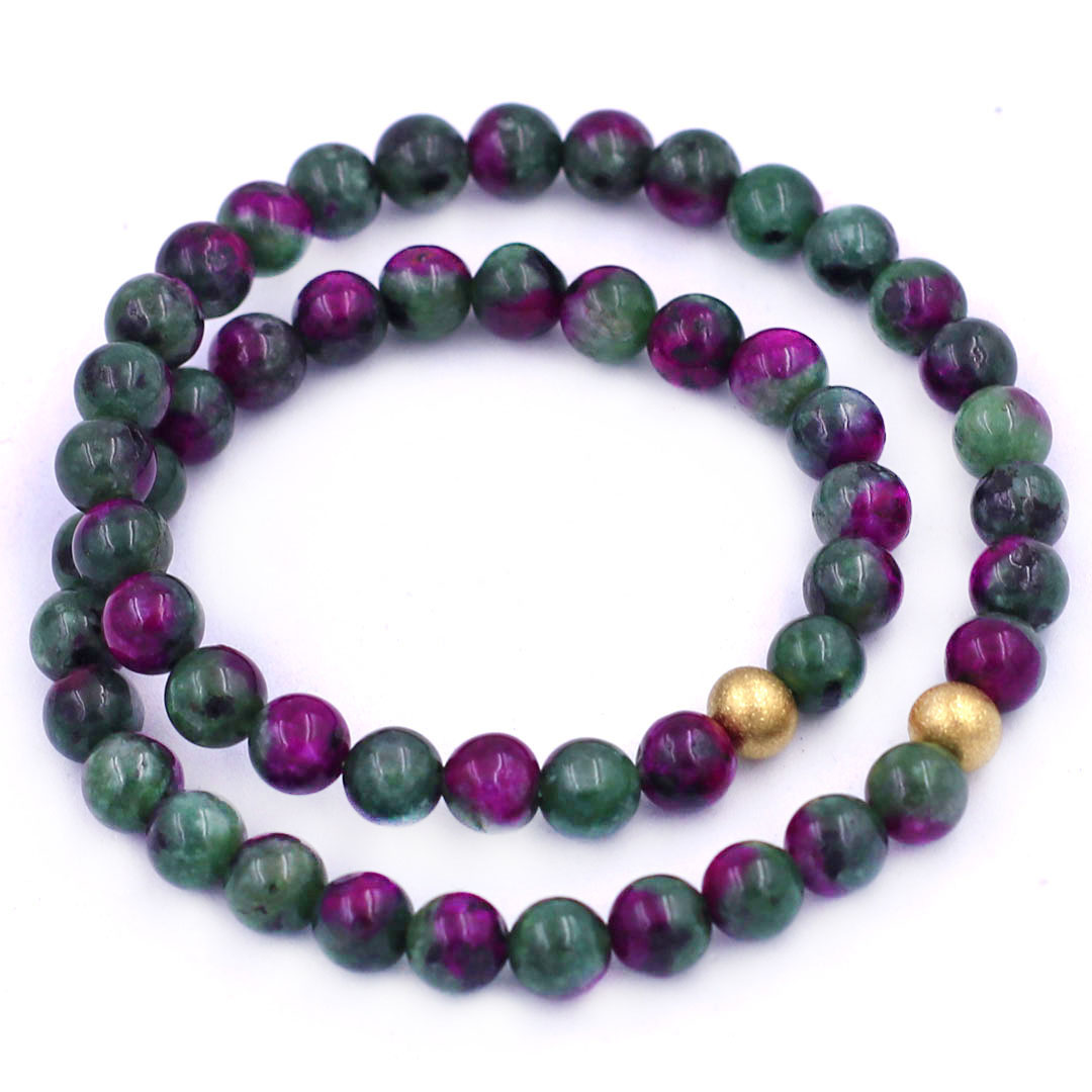 Vòng chuỗi đôi đá cẩm thạch hồng xanh 6 ly charm bi inox vàng, vòng chuỗi niệm Phật, vòng chuỗi đeo tay
