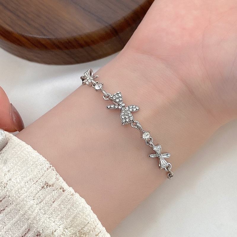 Vòng đeo tay 17KM mạ bạc mặt nơ đính hạt thời trang đơn giản dành cho nữ