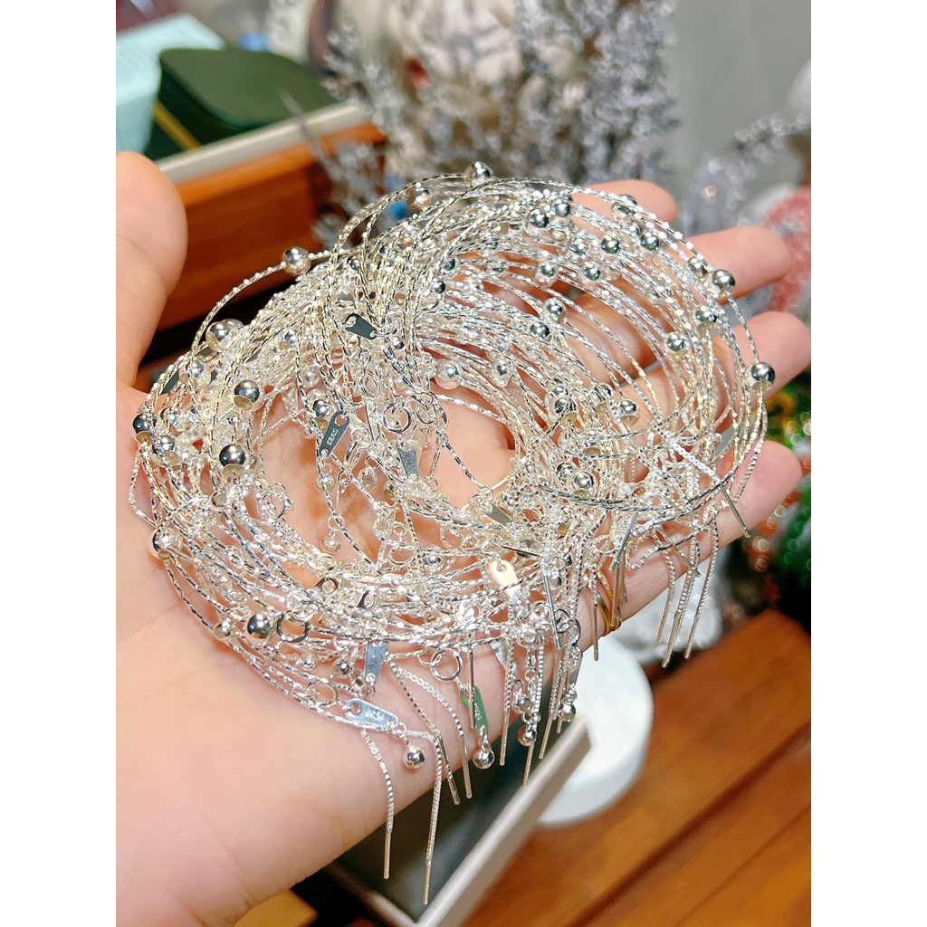 Vòng tay bạc xỏ đá lu thống - lõi bạc xỏ đá