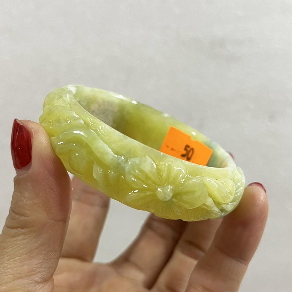 Vòng tay chạm khắc hoa ngọc vàng thật size 5.0cm cho người mệnh hỏa và mộc