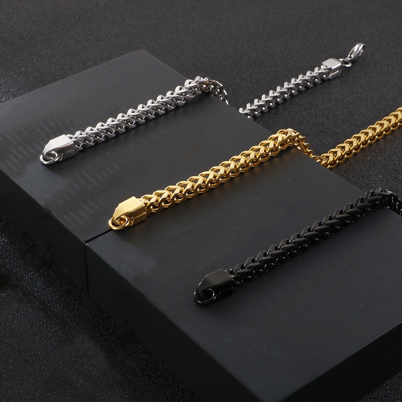 Vòng tay - dây chuyền nam nữ Cuban Basic đính đá sang trọng, chất liệu thép titan siêu bền không gỉ