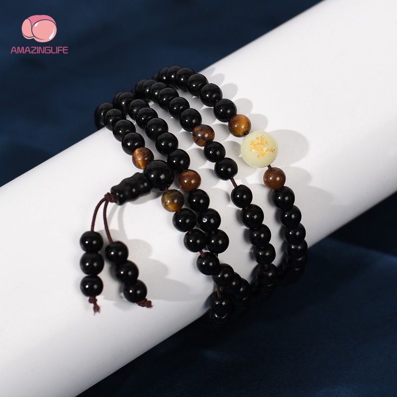 Vòng Tay Chuỗi Hạt Đá Đen Nhiều Lớp Đa Năng Phát Sáng Trong Đêm Phong Cách Cổ Điển Thời Trang Unisex