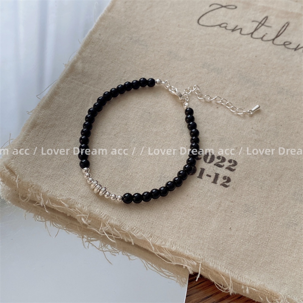 Vòng Tay Chuỗi Hạt Đá Mắt Mèo Bằng Kim Loại Màu Đen Phong Cách Hip Hop Hàn Quốc Cổ Điển Thời Trang Cho Nam Và Nữ