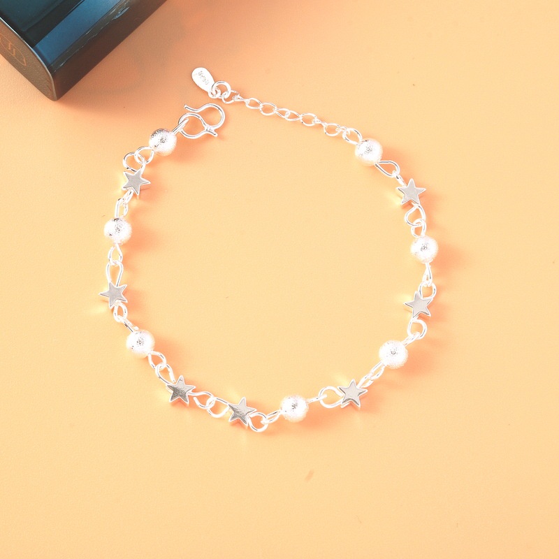 Vòng Tay Chuỗi Hạt Hình Ngôi Sao Mạ Bạc Phong Cách Hàn Quốc Đơn Giản Thời Trang Cho Nữ