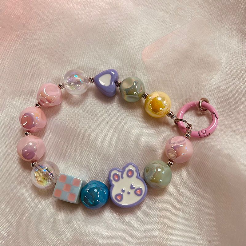 Vòng Tay Chuỗi Hạt Hình Thỏ Dễ Thương Nhỏ Gọn Phù Hợp Với Điện Thoại