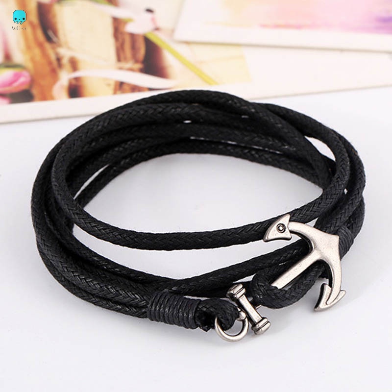 Vòng tay dây bện nhiều lớp mặt mỏ neo cá tính cho nam nữ