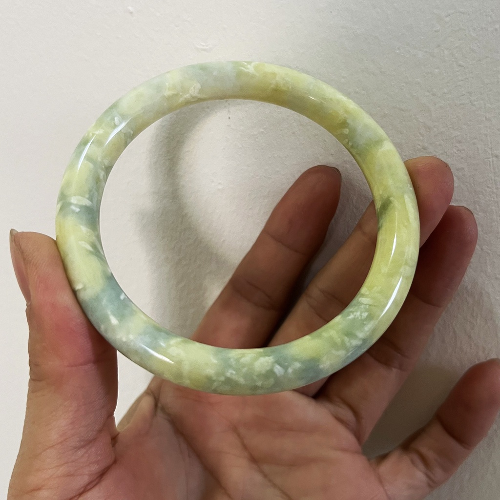 LẦN ĐẦU KHAI THÁC ĐƯỢC LOẠI NGỌC NÀY, MÀU TRẺ TRUNG SIÊU LẠ CHO MỆNH KIM VÀ THỦY 1. Tên: Vòng tay bản tròn ngọc thật của Việt nam, chế tác thủ công từ tảng đá nguyên khối mài gọt mà tạo thành, chất ngọc trong xuyên ánh sáng nên gọi là ngọc. Hàng cực đẹp, rất thanh lị