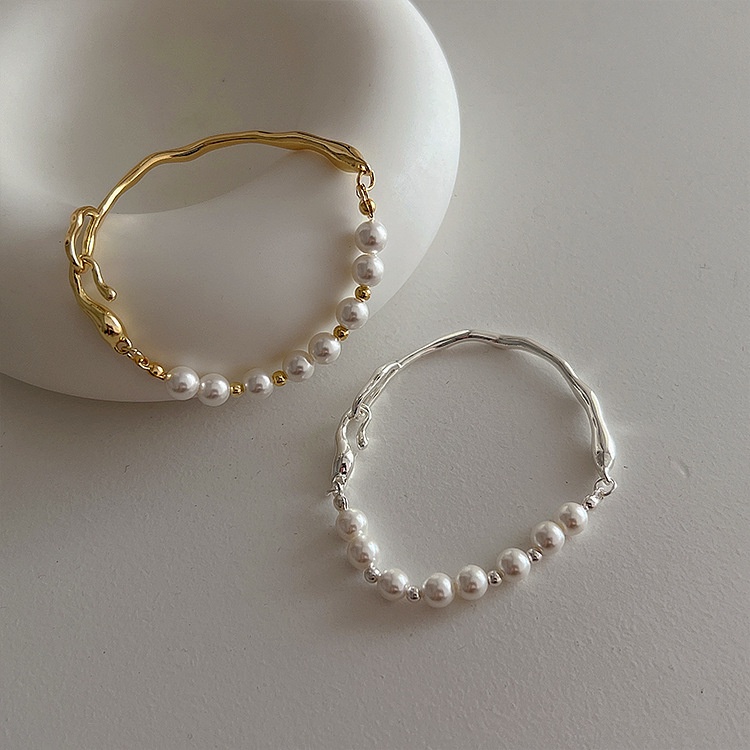 Vòng Tay Ngọc Trai Kim Loại Đính Hạt Ngọc Trai Đơn Giản Phong Cách Hàn Quốc Cá Tính Dễ Phối Đồ