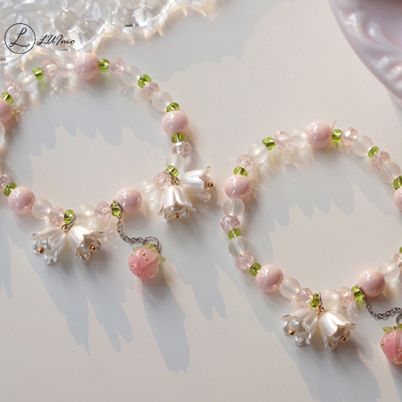 Vòng tay DODDER chuỗi hạt ngọc trai mặt hình nơ / trái tim / hoa tulip thanh lịch