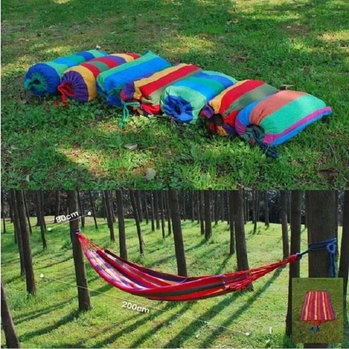 Võng du lịch cắm trại dã ngoại gấp gọn sợi Vải đan Canvas Size 190x80cm