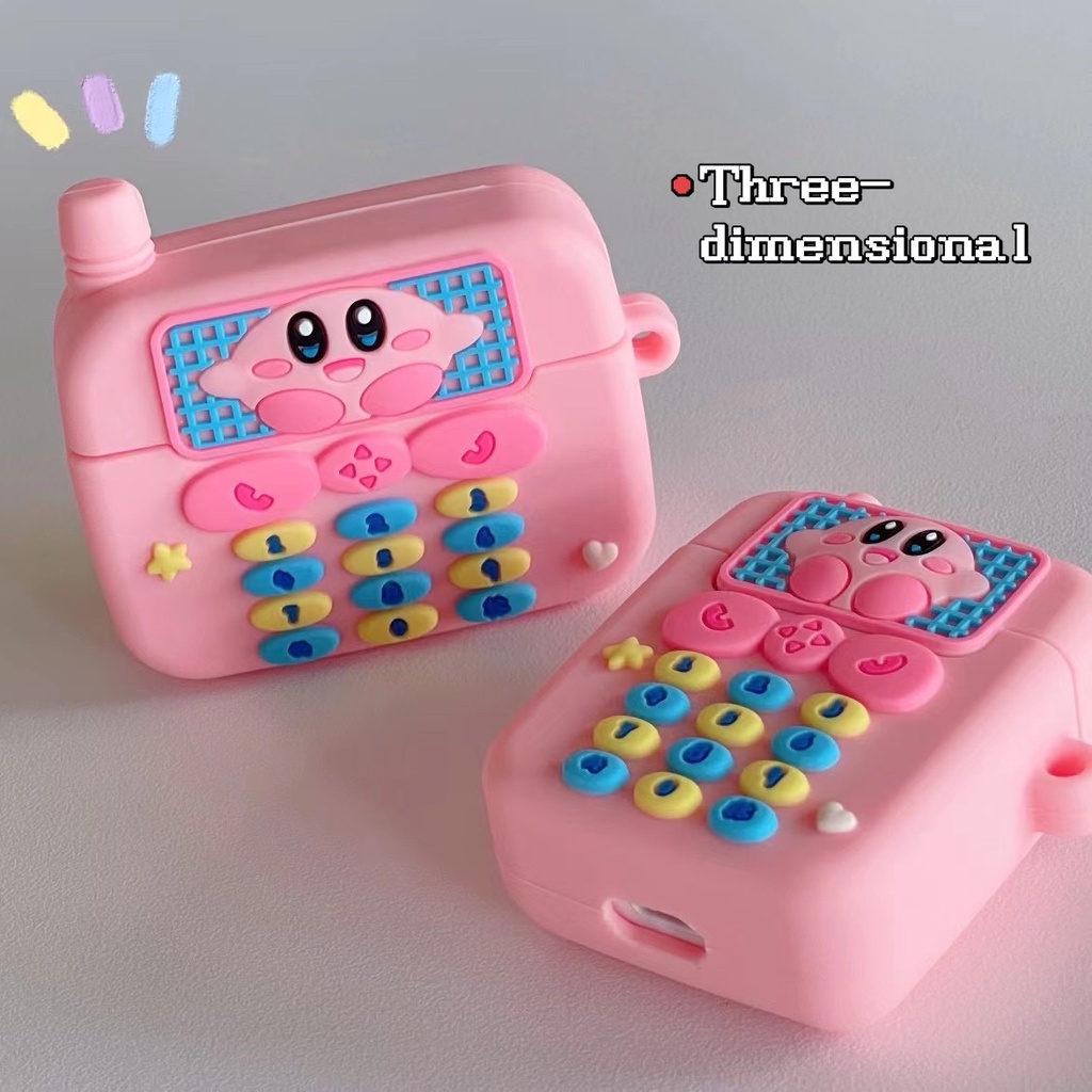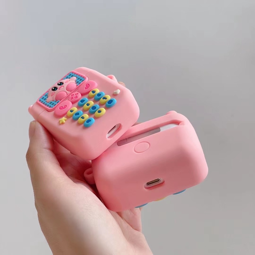 Vỏ Bảo Vệ Hộp Sạc Tai Nghe AirPods 1 2 3 Pro 3rd 2021 Bằng Da Silicon Hình Kirby Màu Hồng Dễ Thương Ốp