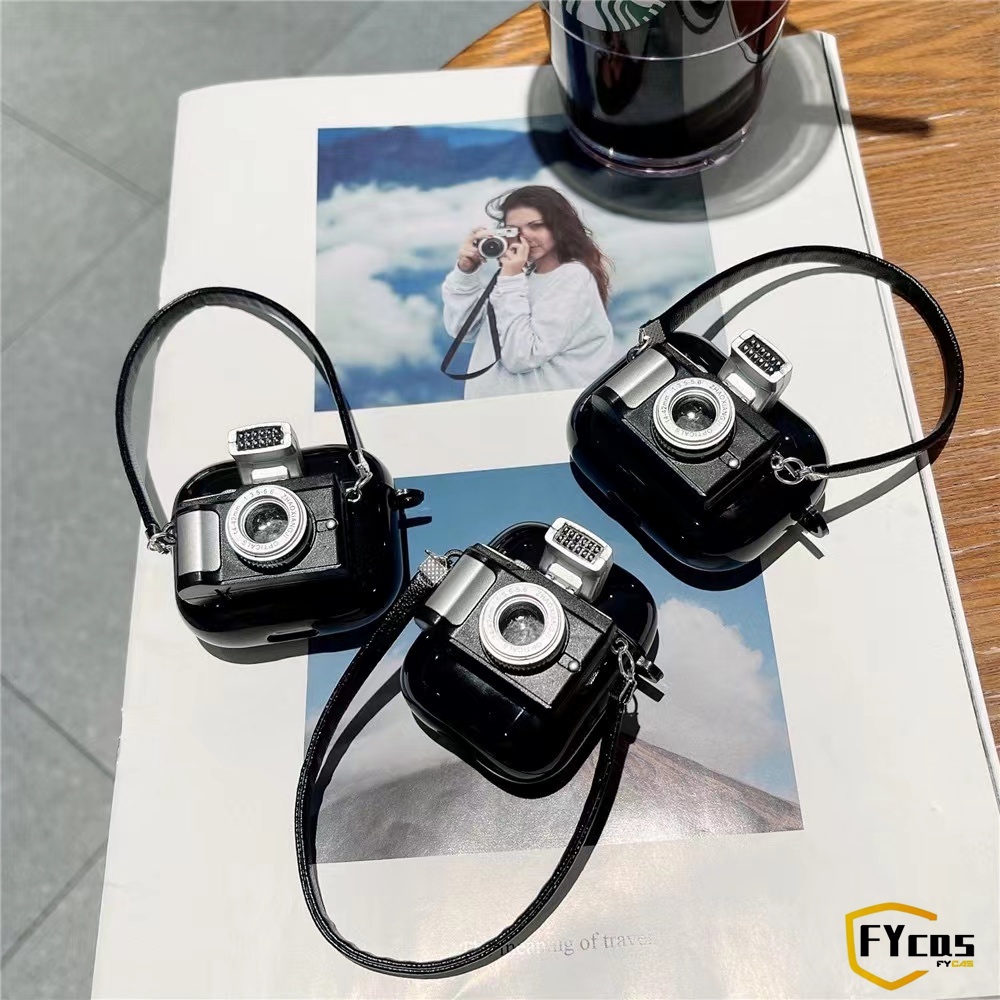 Vỏ Bảo Vệ Hộp Sạc Tai Nghe AirPods 1 2 3 Pro Bluetooth Bằng Silicon Mềm Hình Máy Ảnh 3D Kiểu Sáng Tạo