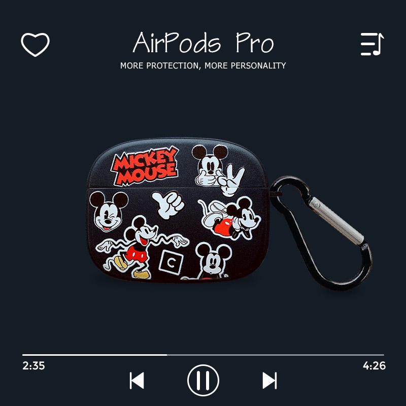 Vỏ bảo vệ hộp sạc tai nghe Airpods 1 2 3 Pro Bluetooth không dây chất liệu silicon hình Mickey kèm móc khóa