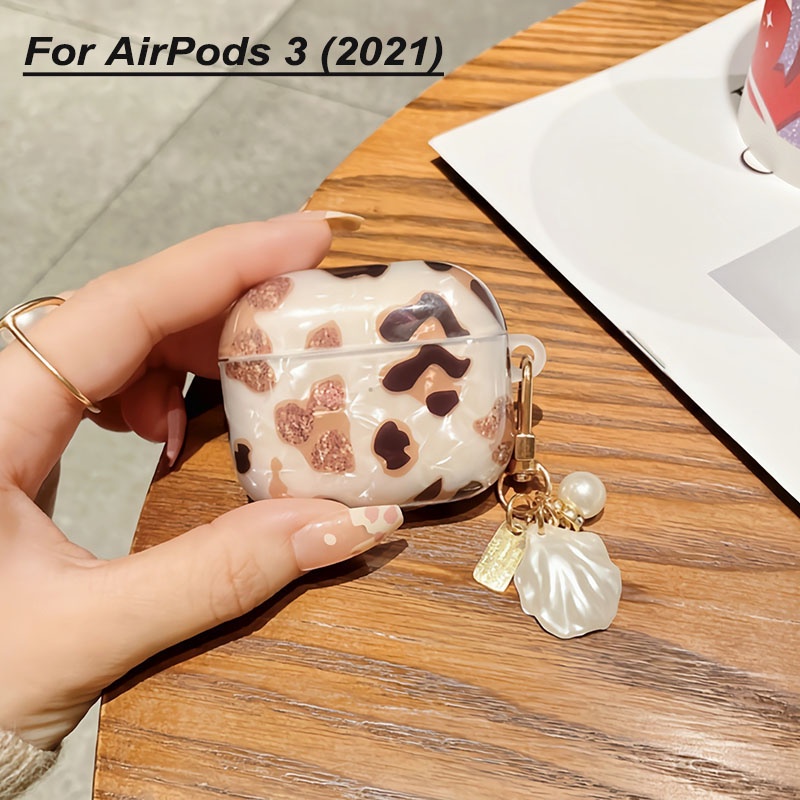 Vỏ Bảo Vệ Hộp Sạc Tai Nghe AirPods 1 2 Pro 3 Họa Tiết Da Báo Sang Trọng Phối Móc Khóa Phong Cách Retro