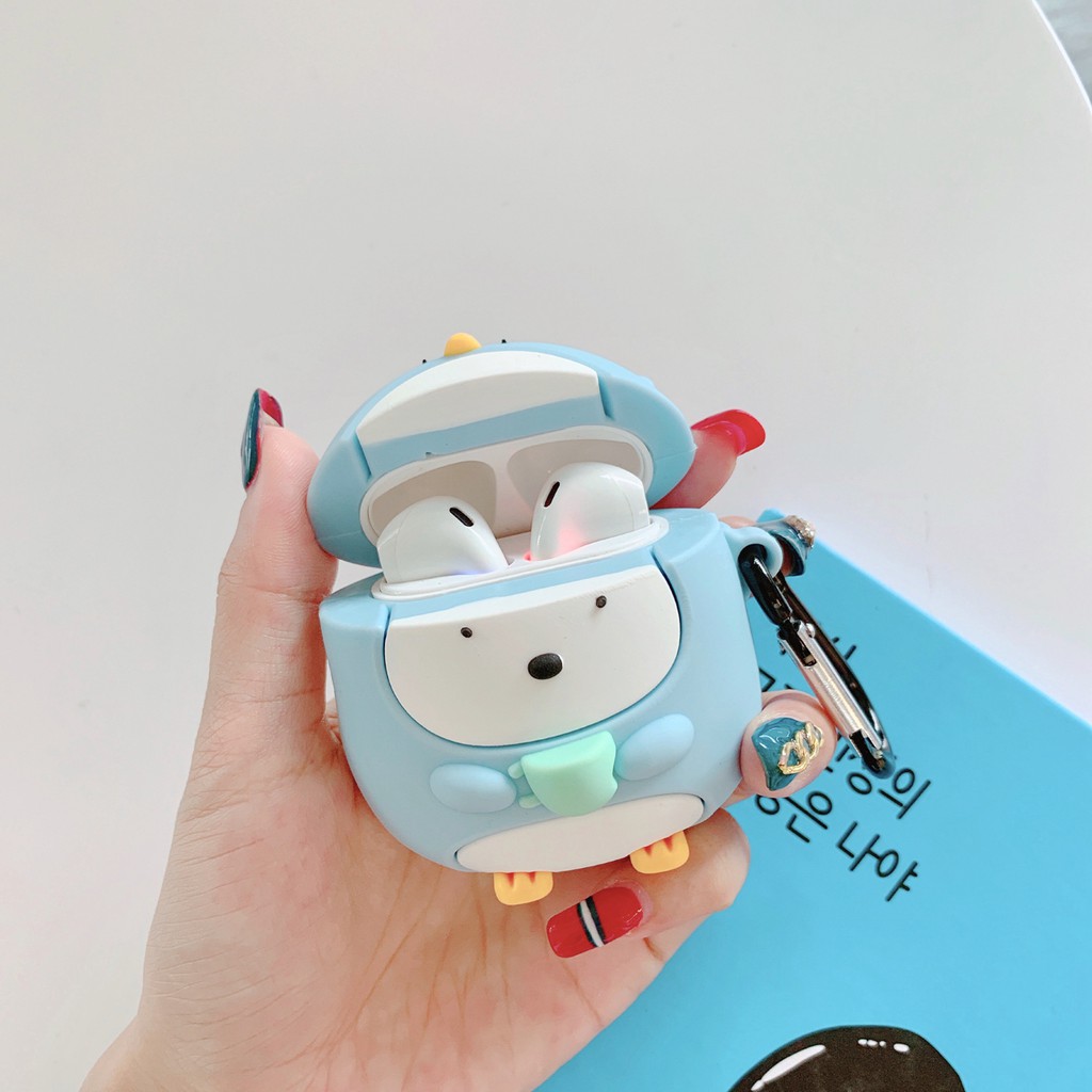 Vỏ bảo vệ hộp sạc tai nghe Airpods 1 2 Pro Bluetooth không dây chất liệu silicon mềm hình chim cánh cụt 3D kèm móc