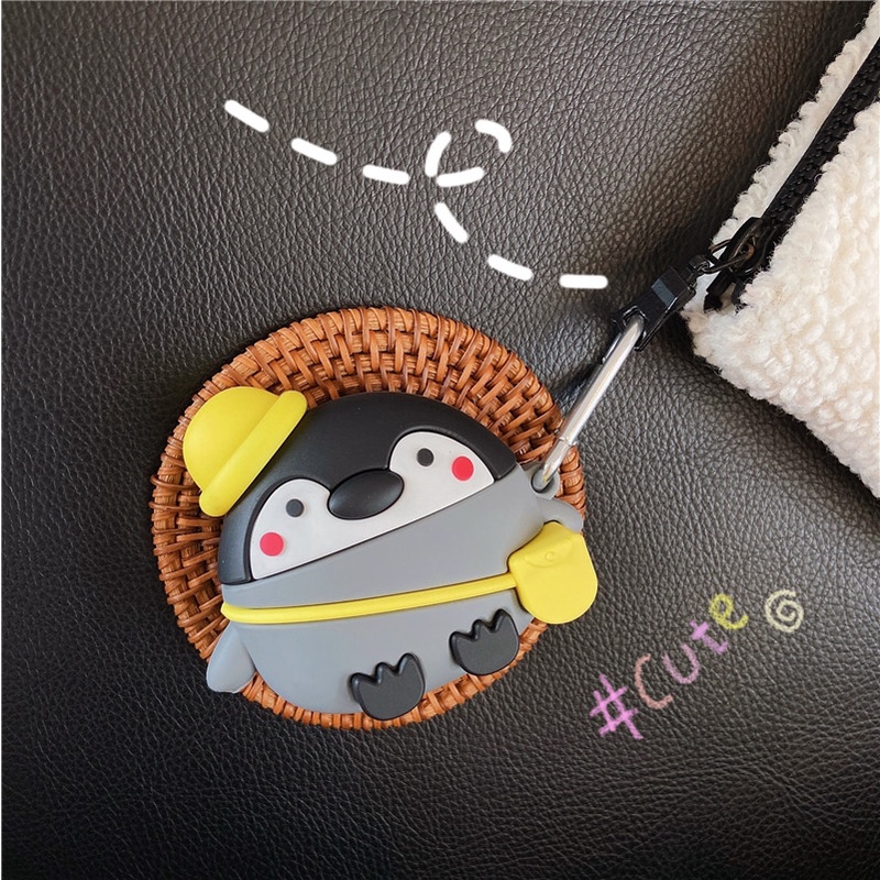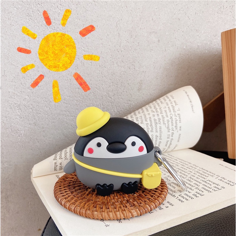 Vỏ Bảo Vệ Hộp Sạc Tai Nghe Airpods 1 / 2nd Airpodspro 3 Bằng Silicon Hình Chim Cánh Cụt Đội Nón 3D