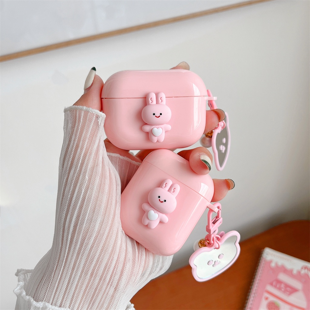Vỏ Bảo Vệ Hộp Sạc Tai Nghe AirPods Pro 1 2 3 Hình Thỏ Hồng Dễ Thương Kèm Gương Soi Tiện Dụng