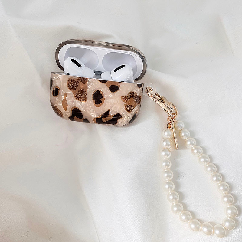 Vỏ Bảo Vệ Hộp Sạc Tai Nghe AirPods Pro 2 3 AirPods 1 / 2 / 3 Họa Tiết Da Báo Đính Ngọc Trai Sang Trọng Kèm Móc Khóa Tiện Dụng