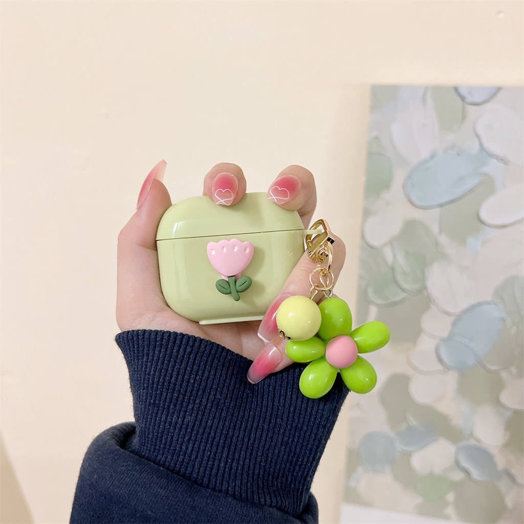 Vỏ Bảo Vệ Hộp Sạc Tai Nghe AirPods Pro AirPods 1 2 3 Hình Hộp Sữa Hoa Xanh Phối Hoa Xinh Xắn Kèm Móc Treo Ốp