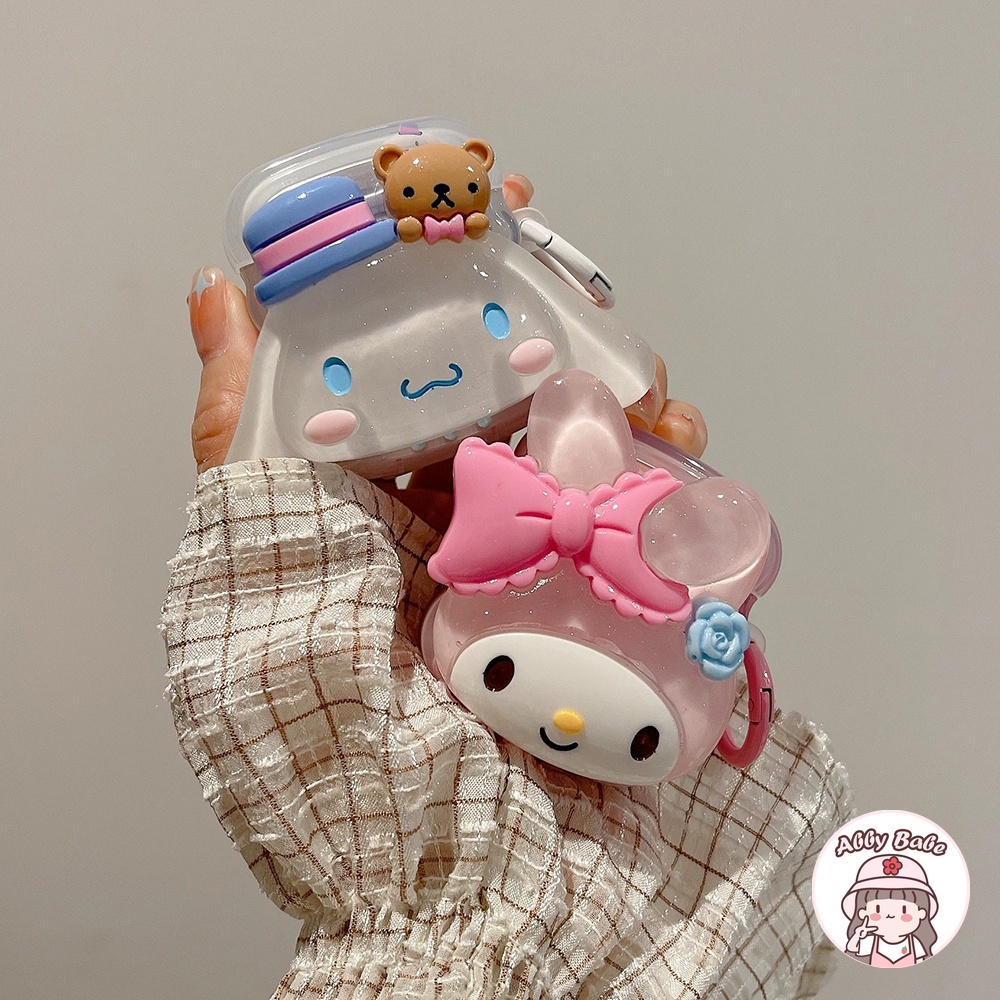 Vỏ Bảo Vệ Hộp Sạc Tai nghe không dây Airpods 1 / 2 / pro Bằng TPU Mềm Hình Cinnamoroll Kuromi Melody 3D Lấp Lánh Kiểu Hàn Quốc