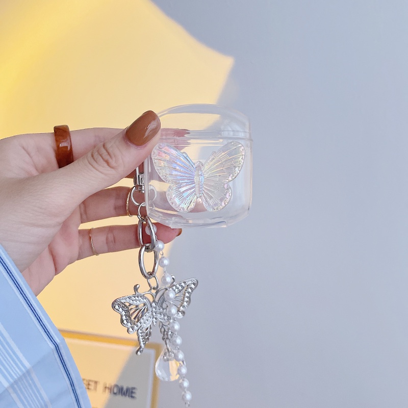 Vỏ bảo vệ hộp sạc tai nghe không dây Baseus Wm01 Enco Air Tws2 Filpuds kiểu trong suốt có dây đeo tay hình bươm bướm