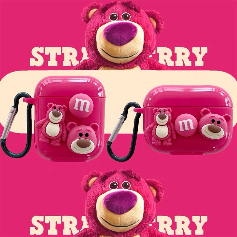 Vỏ bao đựng tại nghe airpod Pinks 3 Gấu Dâu Lotso bảo vệ bao đựng tai nghe không dây bluetooth 1/2/Pro/i12/i11/air3