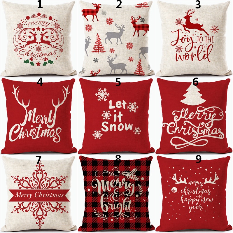 Vỏ gối vải lanh in họa tiết Giáng Sinh/tuần lộc/ông tuyết trang trí xe hơi