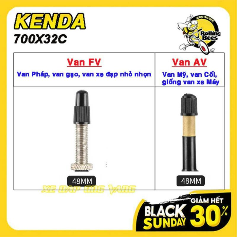 Chi tiết sản phẩm - Thương hiệu: Kenda - Xuất xứ: Trung Quốc - Kích Cỡ Vỏ xe: 700x32C (32-622) - Kích cỡ Ruột/ săm xe: 700×28/32C AV 45L - Van Xe Máy Dài 45mm; FV 45L - Van Xe Đạp - Van Pháp - Van Gạo - Dài 45mm Kiểu van Săm/ ruột: + Van Mỹ – Van Honda – Van Xe Máy + FV 45L - Van Xe Đạp - Van Pháp - Van Gạo - Dài 45mm Chiều dài van Săm/ Ruột: 45mm BH: 1 đổi 1 khi Sản phẩm bị lỗi