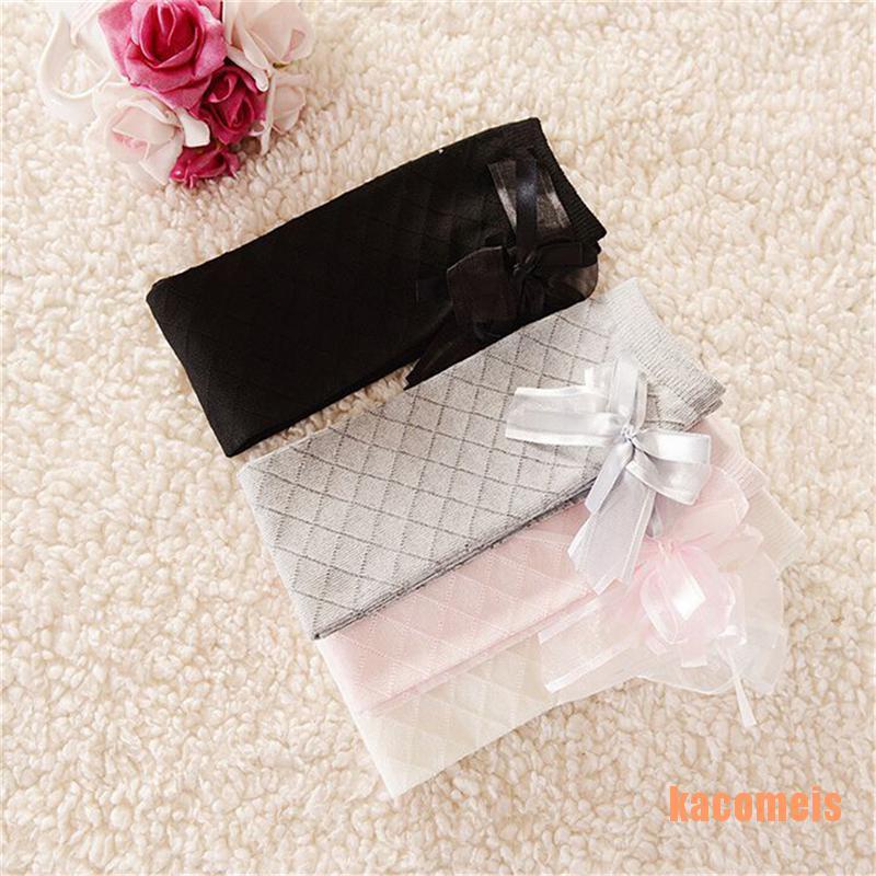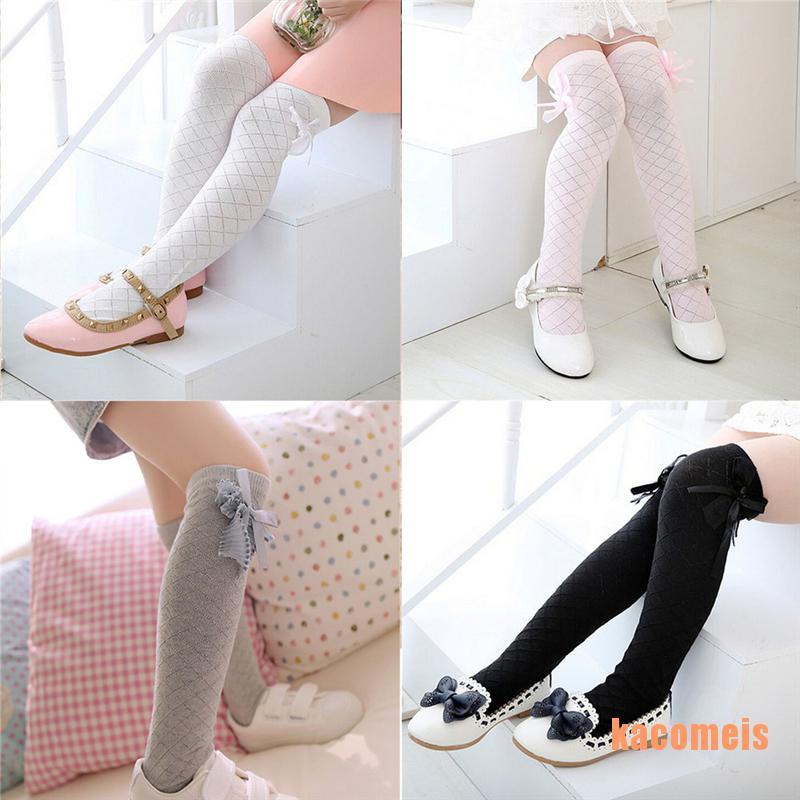 Vớ Cotton Cao Đến Đầu Gối Kẻ Ô Lưới Đính Nơ Cổ Điển Dành Cho Bé Gái Sinh Viên Đi Học