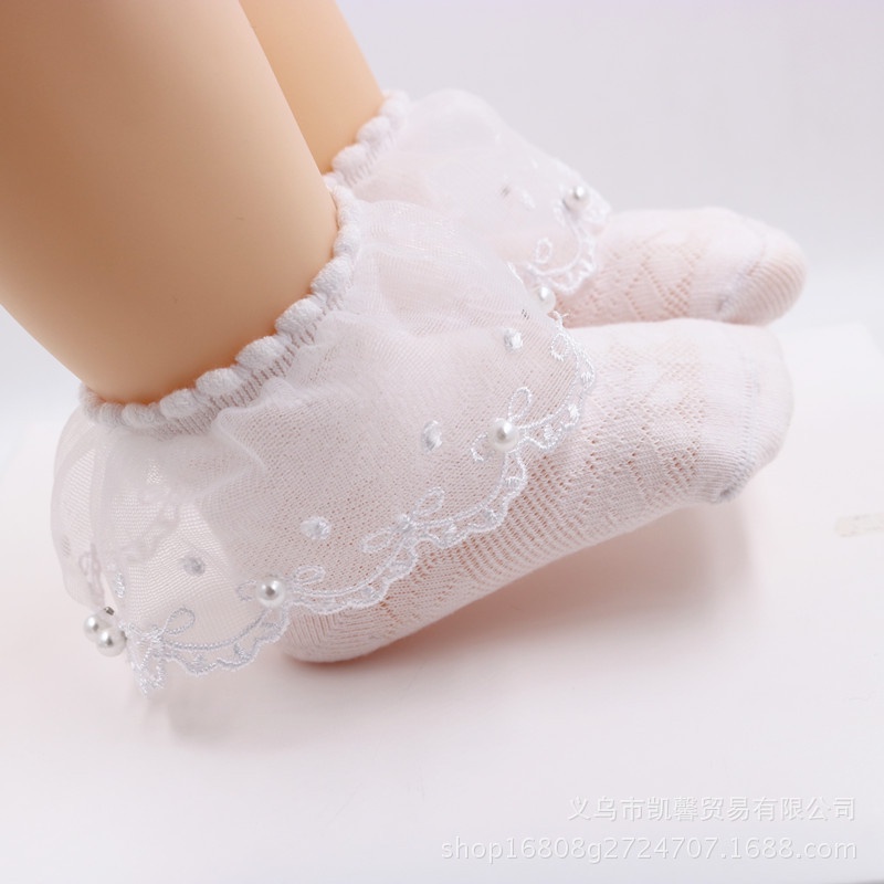 Vớ Ren Lưới Mỏng Đính Ngọc Trai Phong Cách Công Chúa Cho Bé Gái 0-7 Tuổi