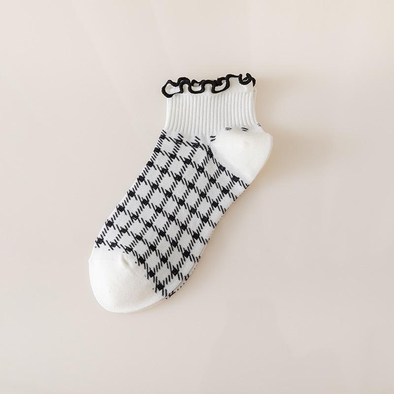 Vớ Thuyền Mỏng Viền Ren Màu Trắng Đen Phong Cách Nhật Bản Ngọt Ngào Thời Trang Xuân Thu Cho Nữ