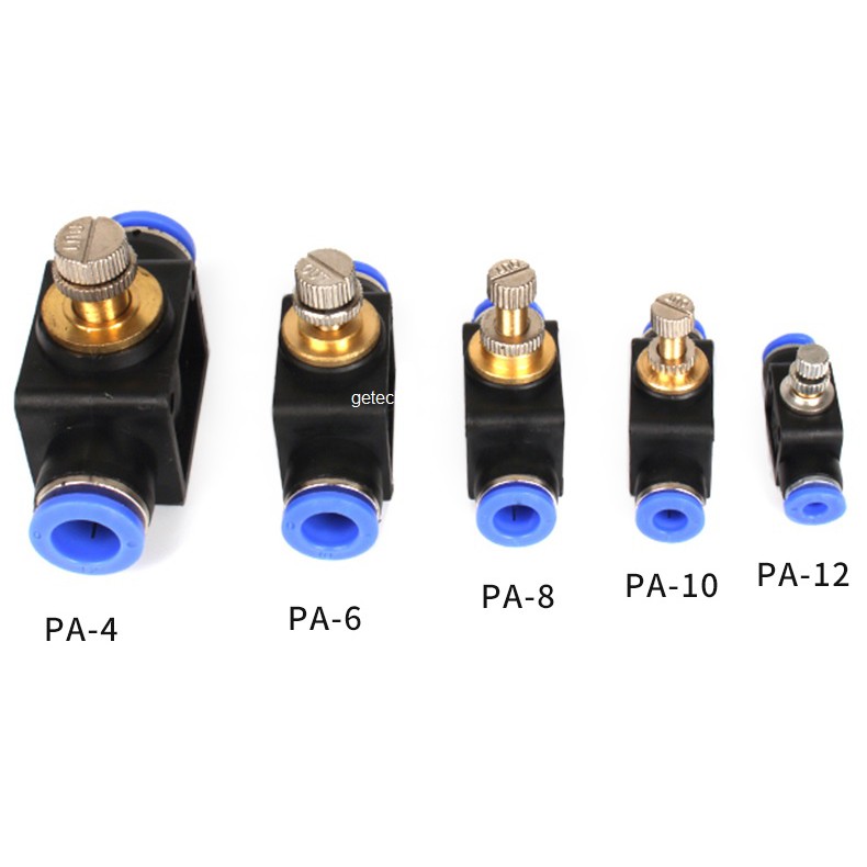 VAN TIẾT LƯU SA-4 SA-6 SA-8 SA-10 SA-12 VAN TIẾT LƯU TRÊN ĐƯỜNG ỐNG ĐIỀU CHỈNH ÁP KHÍ SA-4 SA-6 SA-8 SA-10 SA-12 Thông tin sản phẩm Thân nhựa: Kiểu dáng cắm 2 đầu ống Tinh chỉnh áp khí Tiện dụng, nhỏ gọn dễ tháo lắp, thay thế Series SA có các Model: SA-4: phù hợp ống