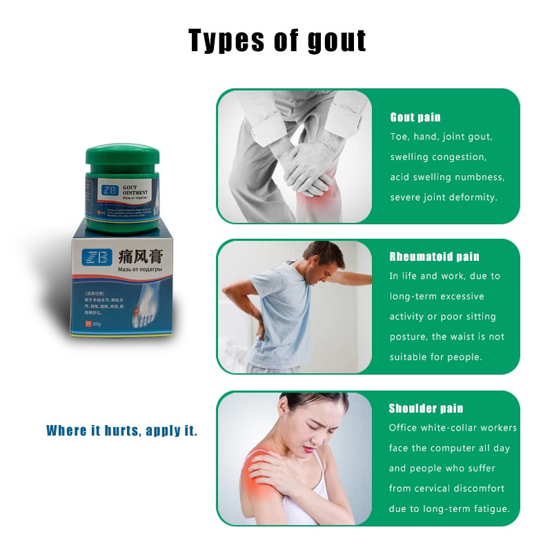 Chào mừng đến với cửa hàng của chúng tôi❤ ✔✔✔ Shop chúng tôi là shop chính hãng. Chúng tôi đảm bảo chất lượng sản phẩm của chúng tôi và cung cấp cho bạn những sản phẩm và dịch vụ tốt nhất. Sự chỉ rõ Hàm lượng tịnh: 20g Thời hạn sử dụng: 2 năm Bảo quản: Nơi thoáng mát, tránh xa tầm tay trẻ em Phạm vi áp dụng: người bị đau ngón chân do Thấp khớp, Viêm khớp dạng thấp và Đau khớp đầu gối, v.v. Tính năng sản phẩm: 1. Thành phần chính hoàn toàn là thảo mộc thiên nhiên dịu nhẹ và không gây kích ứng. 2. Giảm đau cơ và đau khớp hiệu quả Sử dụng: 1. Rửa vùng bị ảnh hưởng bằng nước ấm trước khi sử dụng thuốc mỡ 2. Nhẹ nhàng thoa thuốc mỡ lên vùng bị ảnh hưởng, 2-3 lần một ngày